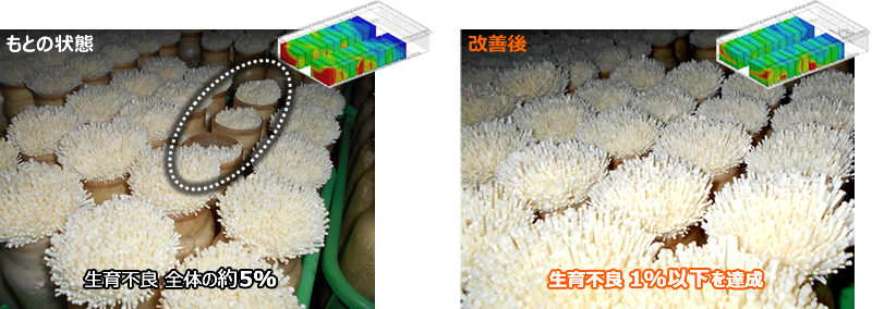 菌培養の工程において、培養室内における温度ムラによって生育の遅れが発生することがある。