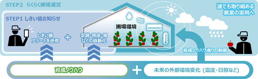 天候など外部環境変化を先読みして、設備を自動制御することで、人の作業負担を増やさずに高度な生産(*2)を実現します。