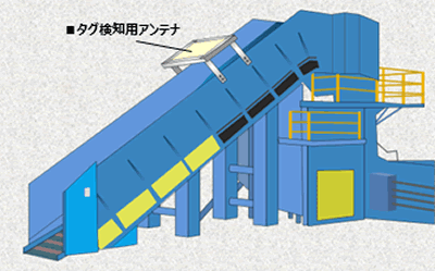 リサイクル工場、古紙回収工場などでは作業員がコンベヤに進入した際、誤って圧縮機等に巻き込まれる事故の発生が報告されています。 そんな時、RFIDタグを使用したコンベヤ進入検知システムを適用すると、RFIDタグを所持した作業員がコンベヤに進入すると自動でコンベヤを停止させるので、巻き込まれ等の災害防止に役立ちます。